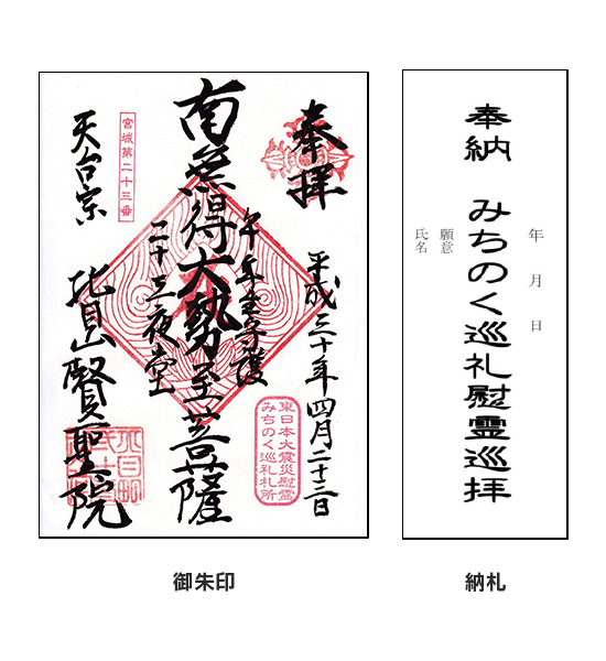 みちのく巡礼用納札を準備しました。各札所に用意してありますのでお申し出ください。1枚ずついただけます。