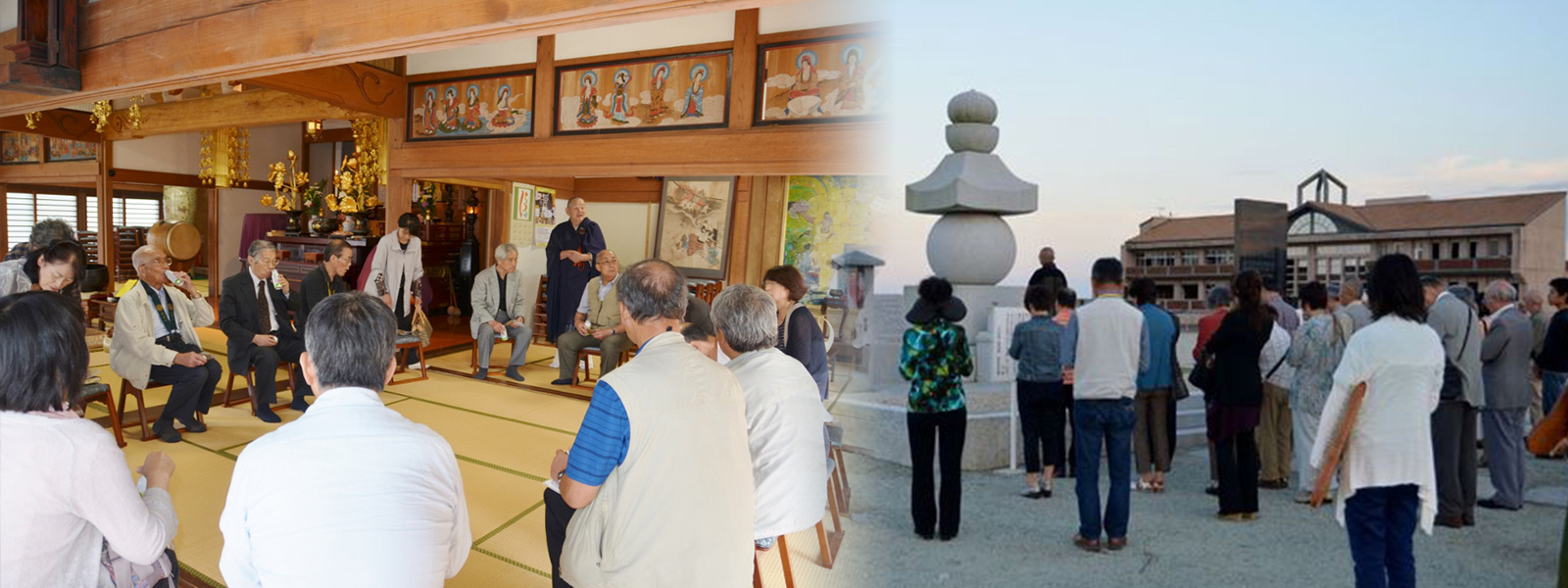 服装や身支度につきましても特に定めませんが、慰霊にふさわしい服装でお祈りください。本格的な慰霊巡礼を目指される場合には白衣や輪袈裟等の着用をお勧めいたします。